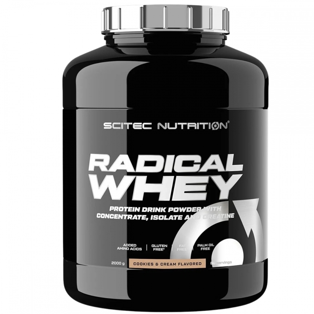Radical Whey od Scitec Nutrition to więcej niż typowa odżywka białkowa – to innowacyjna kompozycja wysokiej jakości białka serwatkowego, uzupełniona o aminokwasy i kreatynę. Ten preparat kompleksowo wspiera Twój organizm na każdym etapie treningu!