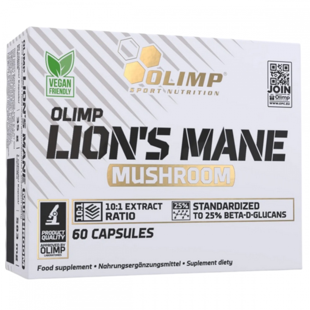 Każda z niewielkich i łatwych do połknięcia kapsułek Olimp Lion’s Mane Mushroom zawiera 500 mg ekstraktu z owocników soplówki jeżowatej, w tym 125 mg wspomnianych beta-1,3/1-6-D-glukanów. Brak dodatków odzwierzęcych powoduje, ze produkt marki Olimp Sport Nutrition mogą stosować weganie.