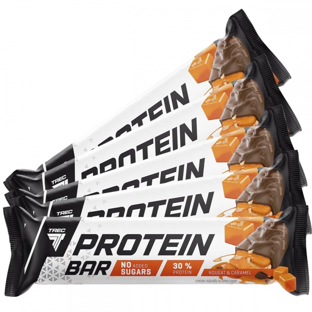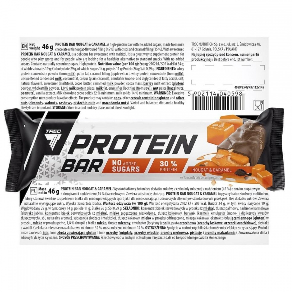 Protein Bar Nougat & Caramel to połączenie delikatnej mlecznej czekolady, kremowego nugatu i słodkiego karmelu w formie wysokobiałkowego batona. Produkt nie zawiera dodanego cukru, a jego przyjemny smak uzyskano dzięki zastosowaniu maltitolu – substancji słodzącej o niższej kaloryczności niż tradycyjny cukier.