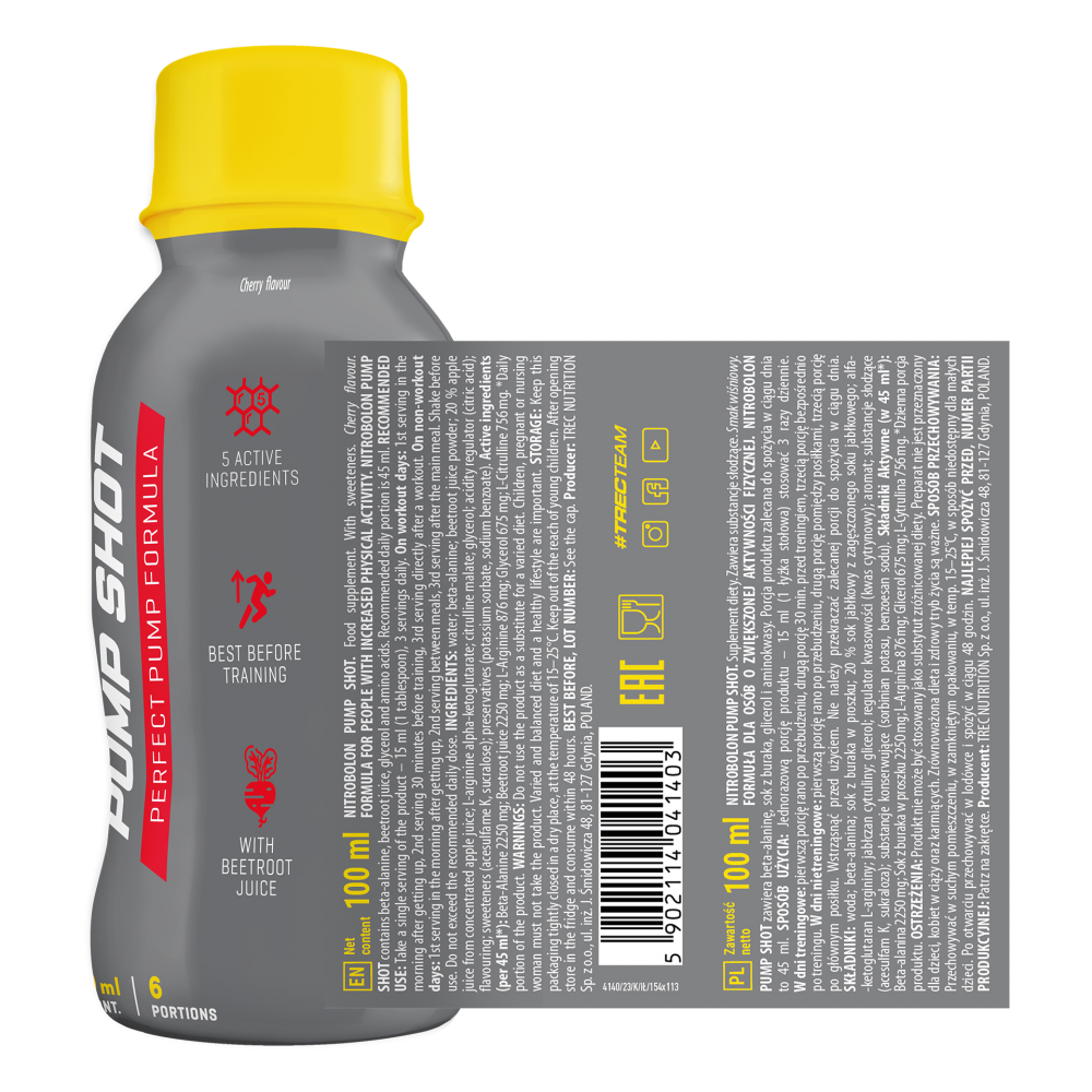 Formuła dla osób o zwiększonej aktywności fizycznej. Przedtreningowy shot zawiera beta-alaninę, sok z buraka, glicerol i aminokwasy.