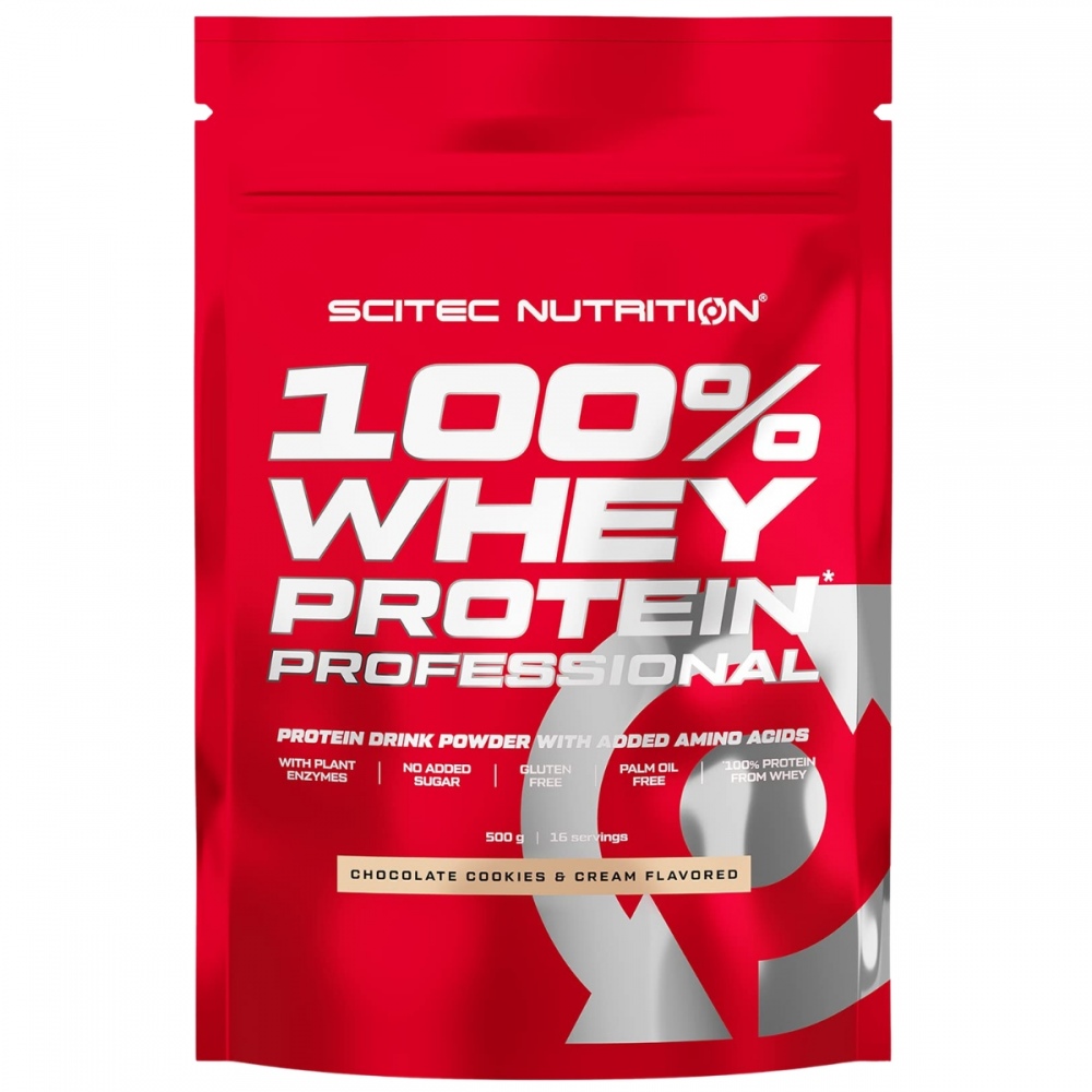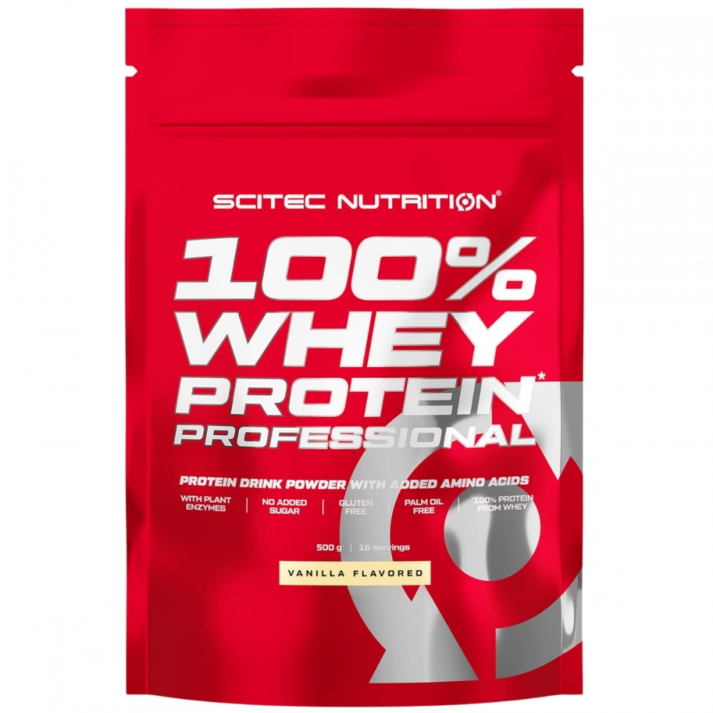 Produkt 100% Whey Protein Professional firmy Scitec Nutrition jest ultrafiltrowanym koncentratem białka serwatki o wysokiej jakości. Dzięki doskonałemu profilowi aminokwasowemu (47,5% stanowią tzw. aminokwasy anaboliczne takie jak: BCAA, arginina, glutamina i tyrozyna) 100% Whey Protein Professional posiada najwyższą wartość biologiczną. 100% Whey Protein Professional zawiera laktozę w małej ilości i został wzbogacony o opatentowane enzymy trawienne: Bromelainę pozyskaną z ananasa oraz Papainę pozyskaną z melonowca. Produkt nie zawiera Aspartamu.