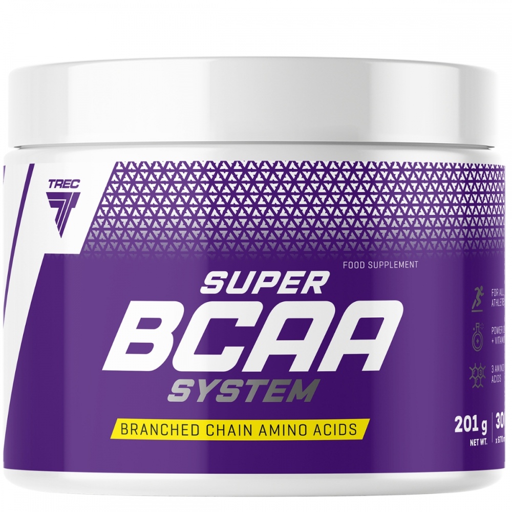 Super BCAA System jest suplementem zawierającym optymalnie dobrane proporcje aminokwasów rozgałęzionych: izoleucyny , leucyny i waliny. Aminokwasy te należą do grupy substancji egzogennych czyli takich, których organizm nie potrafi sam syntetyzować. Branched Chain Amino Acids (BCAA) stanowią ok.40% suchej tkanki mięśniowej organizmu, dlatego też obniżenie ich stężenia w organizmie doprowadza do redukcji tkanki mięśniowej. Super BCAA System został dodatkowo wzbogacony o wit.B6, zwiększającą przyswajanie aminokwasów oraz taurynę, która blokuje wytwarzanie serotoniny dzięki czemu wzrasta znacznie wytrzymałość wysiłkowa.